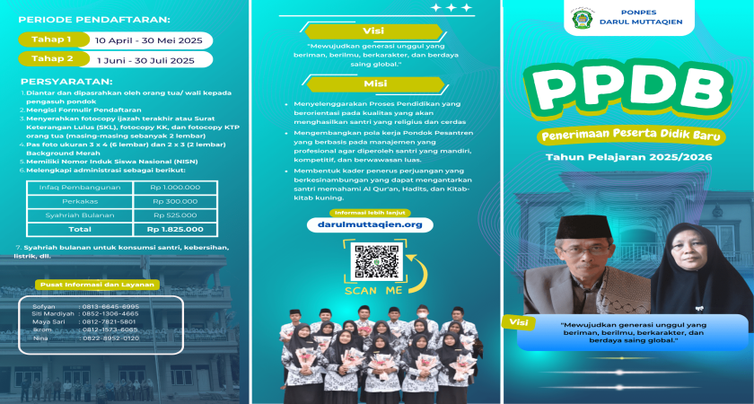 Demikian informasi terkait SPMB Tahap MTs Darul Muttaqien tahun ajaran 2025 /2026. Semoga kita semua dilancarkan segala urusan terutama dalam mendidik putra / putri kita sebagai penerus generasi bangsa.