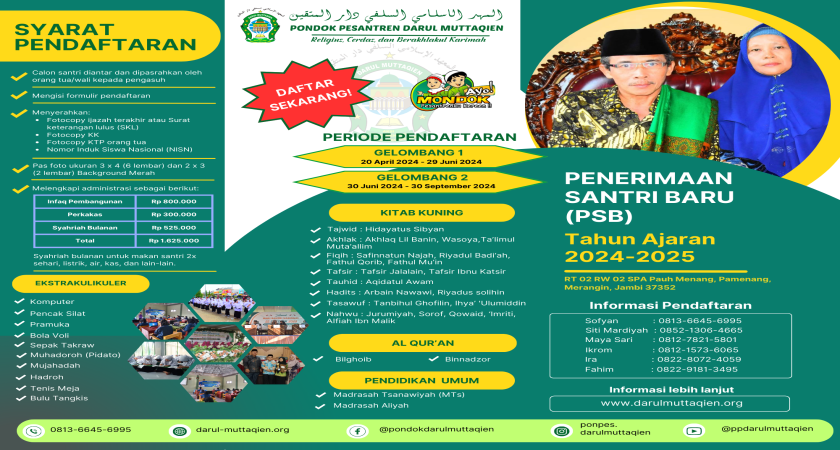 Penerimaan Santri Baru Pondok Pesantren Darul Muttaqien Jambi Tahun Ajaran 2024/2025